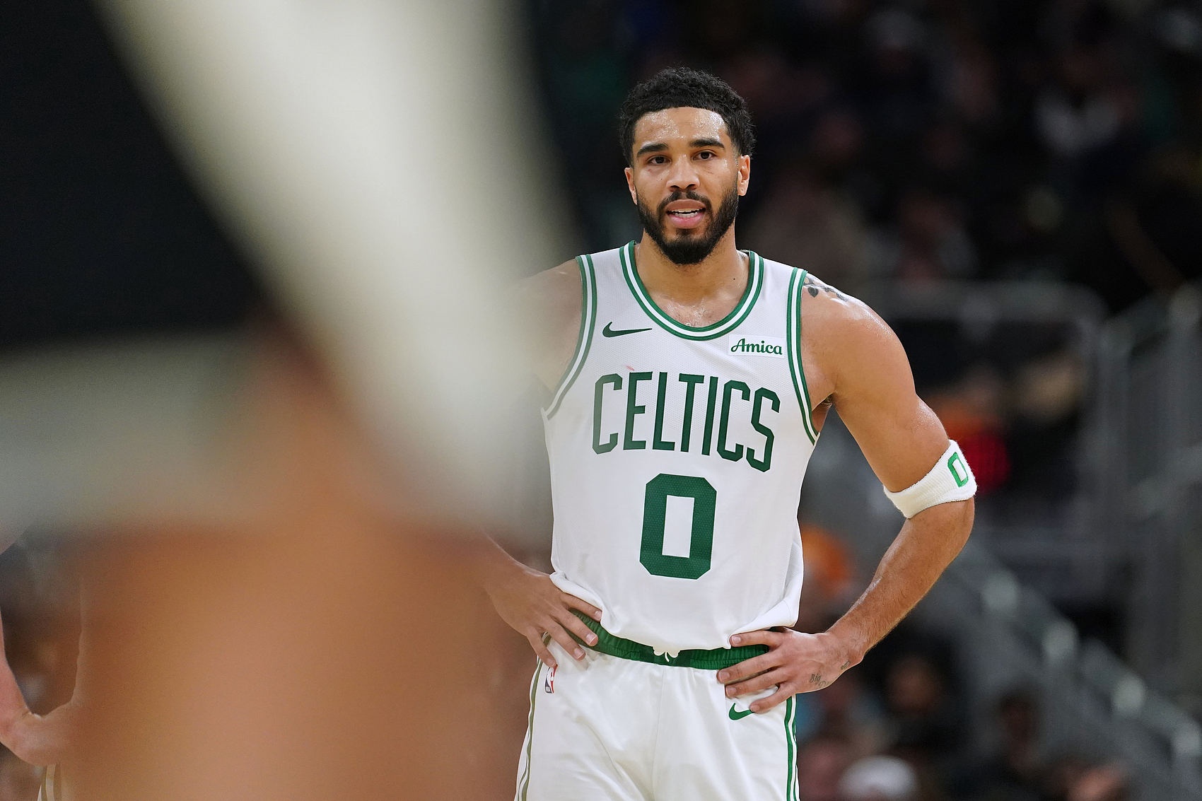 开云体育在线登入-手感冰凉!塔图姆上半场11投2中&三分5中0 得到10分9板4助1断1帽
